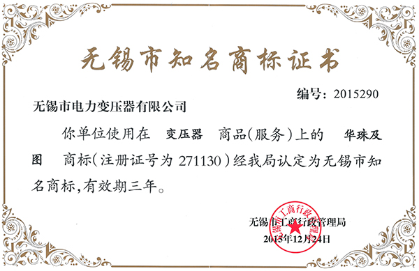 • 無錫市知名商標證書16.3.4